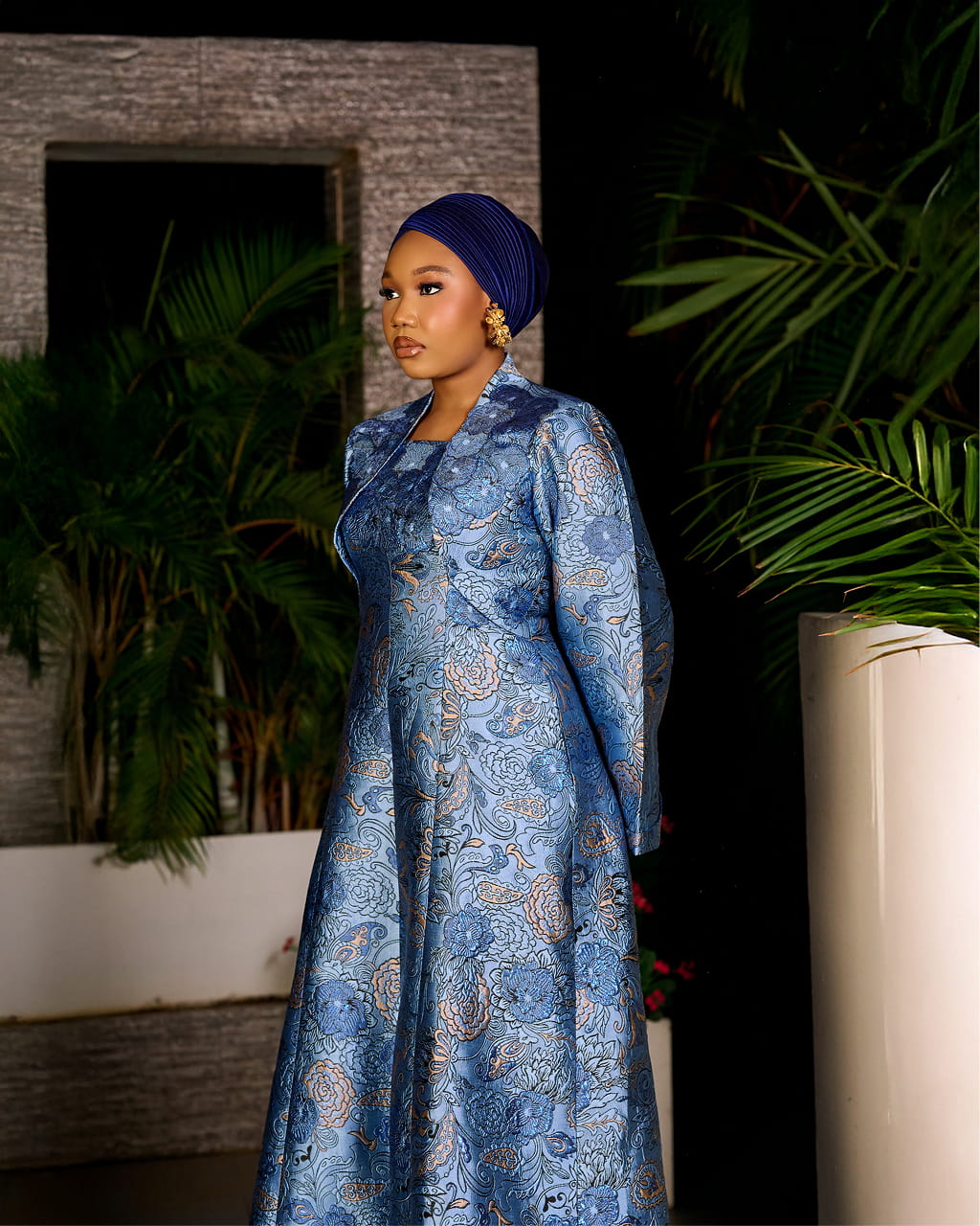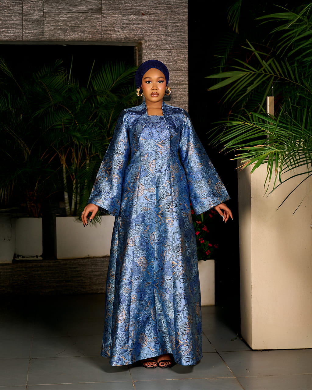 Make a statement with the Blue Sultana Kaftan crafted with padded panels for a structured, elegant silhouette that flatters all body shape. Its tailored design ensures a polished, regal look while maintaining comfort and modesty.