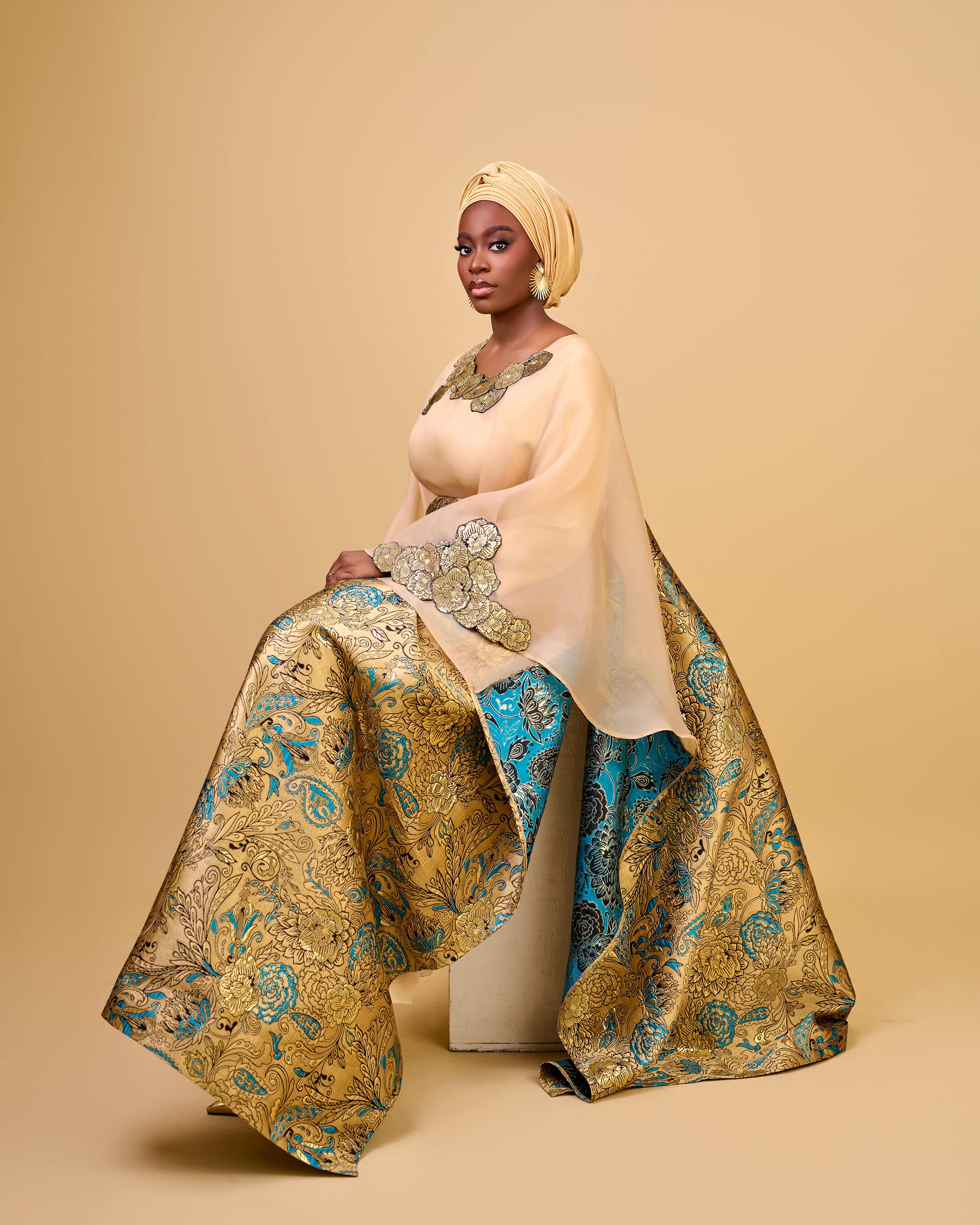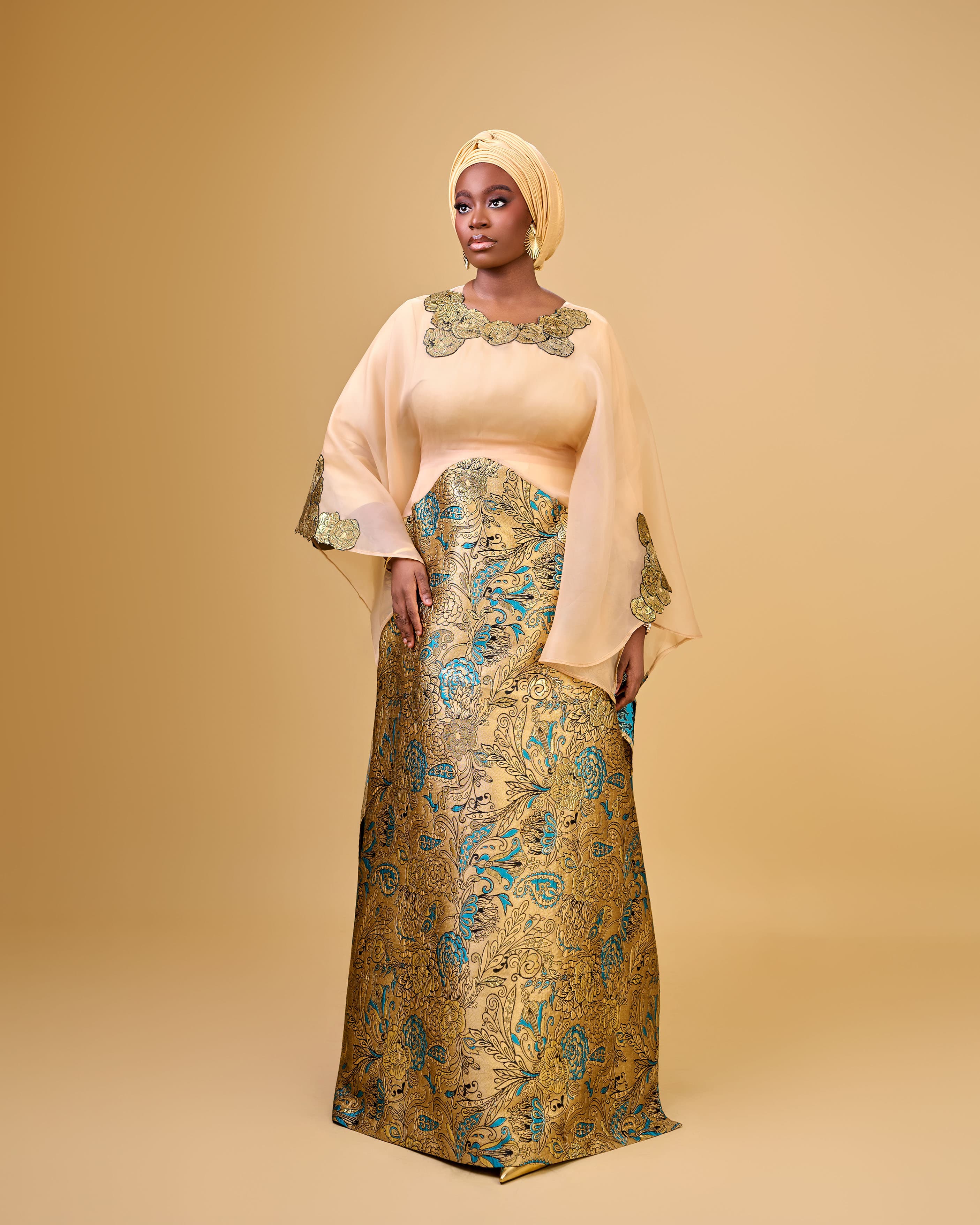 KIRA II Brocade Organza Boubou in Gold